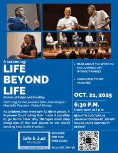 Life Beyond Life: Stories of Hope and Healing. Spend an evening with former juvenile lifers to learn more in their own words. Hosted by Safe & Just Michigan.